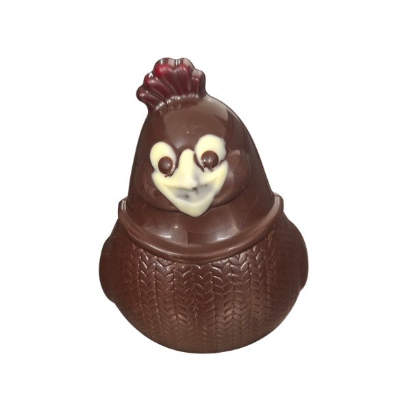 Poule Tricot : chocolat lait ou noir garni de friture (80gr).